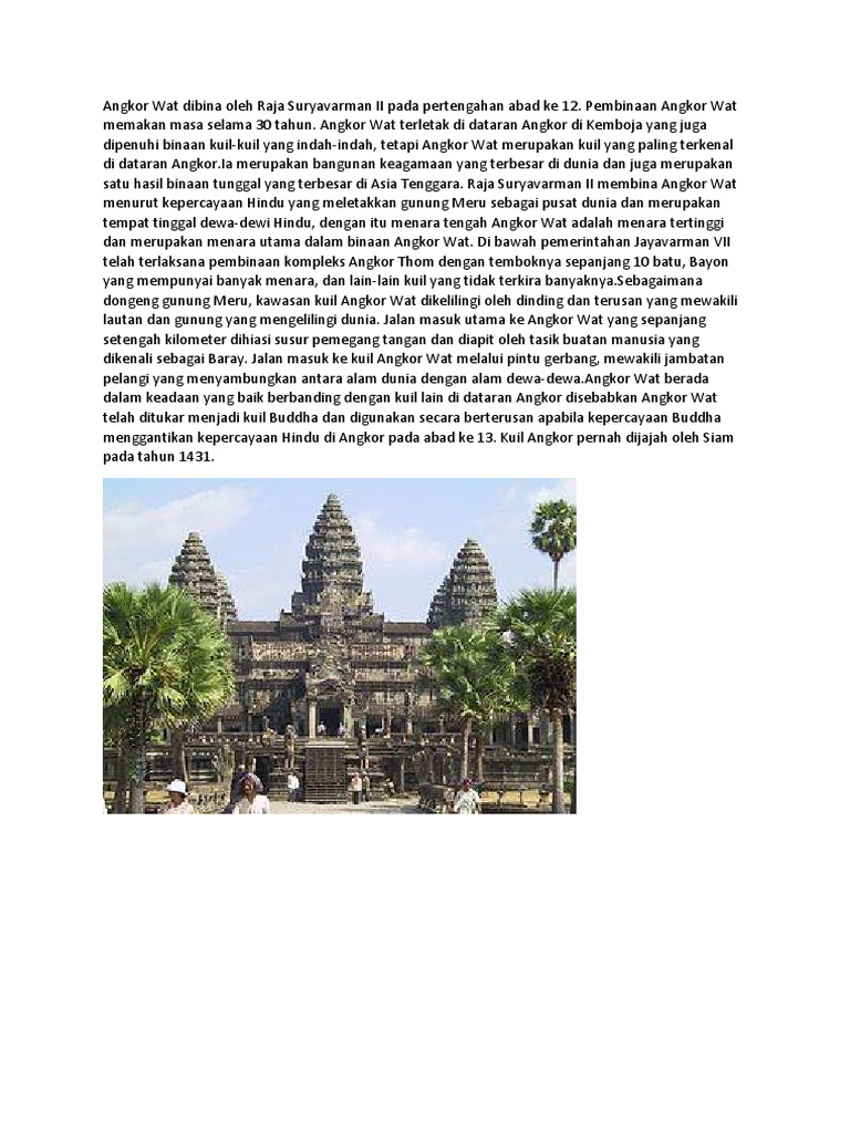 Hanya bahan bangunan berupa batu bata batu pasir dan laterit yang tersisa sementara kayu telah hilang akibat pelapukan selama ratusan tahun dan proses lainnya. Seni bina negara kita masa kini mengambarkan kecemerlang masyarakat malaysia nama penuh. Nyatakan ciri ciri binaan candi angkor wat. Pembinaan angkor thom menurut kepercayaan hindu dan berdasarkan suryavarman ii angkor thom merupakan tempat tinggal dewa dewi.