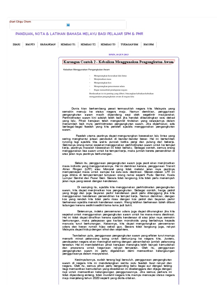Contoh karangan kepentingan pengangkutan awam. Anda di halaman 1 dari 2. Namun demikian penggunaan pengangkutan awam masih dipandang sepi oleh segelintir masyarakat. Selain daripada perlu memberi isi isi penting yang berkaitan pelajar juga perlu menghurai dengan gaya bahasa yang menarik serta betul dari segi penggunaan bahasanya sebagai panduan berikut dikongsikan contoh karangan kebaikan menggunakan pengangkutan awam. Sebab sebab tamadun awal wujud di lembah lembah sungai.