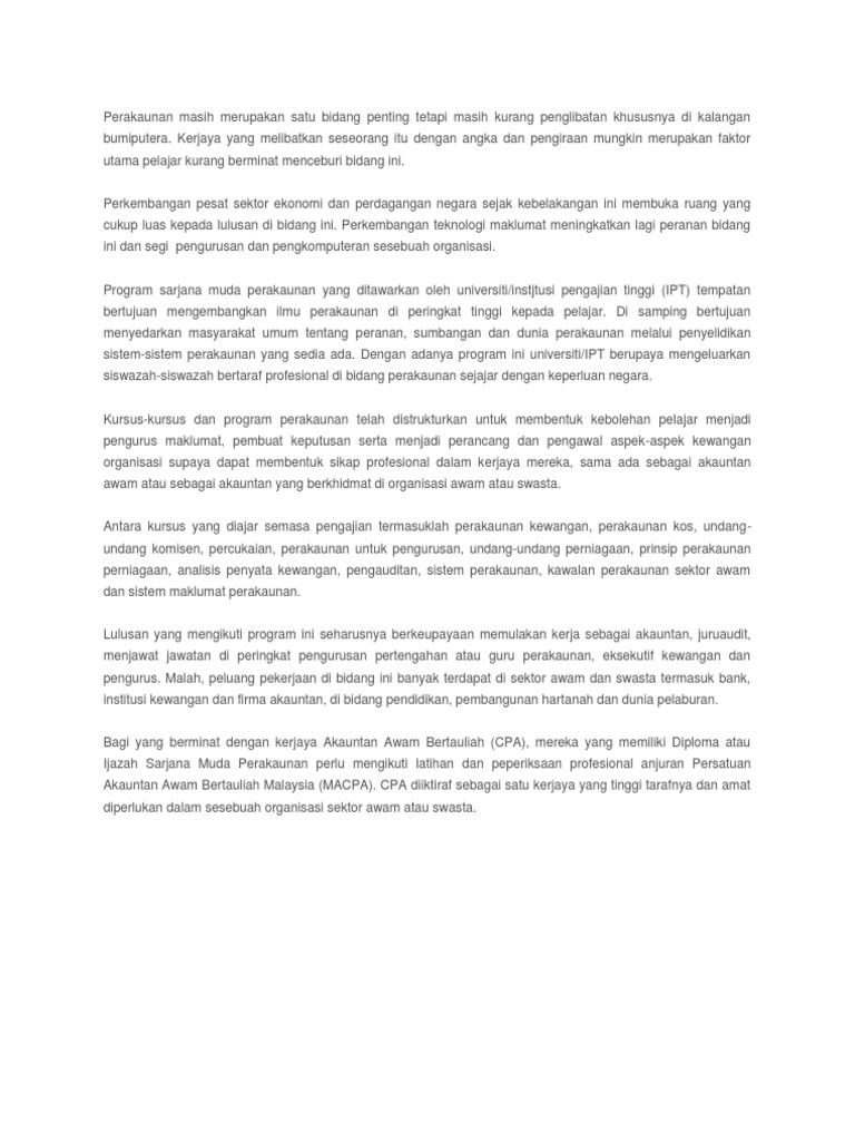 344 accounting and taxation 26 07 2019. Ijazah sarjana muda sains kemanusiaan komunikasi. Selepas spm perlu sambung ke diploma perakaunan setaraf atau mengikuti terus ke ijazah sarjana muda perakaunan setaraf. Fpep menawarkan beberapa ijazah dalam bidang perniagaan ekonomi dan perakaunan seperti ijazah sarjana muda dengan kepujian keusahawanan pengurusan kewangan dan perbankan pengurusan perhotelan perniagaan antarabangsa pemasaran dan pengurusan pelancongan sarjana muda ekonomi dengan kepujian ekonomi perancangan.