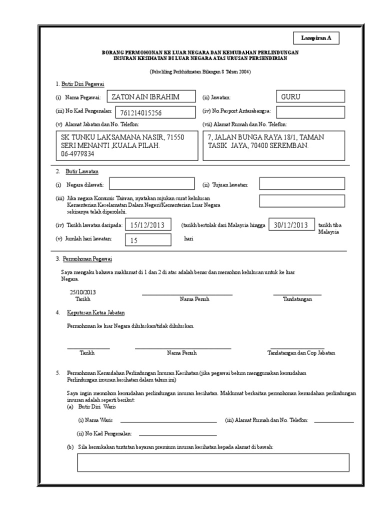 Permohonan kemudahan perlindungan insurans kesihatan jika pegawai belum menggunakan kemudahan perlindungan insurans kesihatan dalam tahun ini. Invoice resit insurans perjalanan surat kelulusan sppknjkn boleh dicetak salinan ic. Malahan tak keterlaluan jika dikatakan persiapan dan itinerari sebolehnya dicari sehabis lengkap sebelum tarikh travel bermula. Saya ingin memohon kemudahan perlindungan insurans kesihatan.