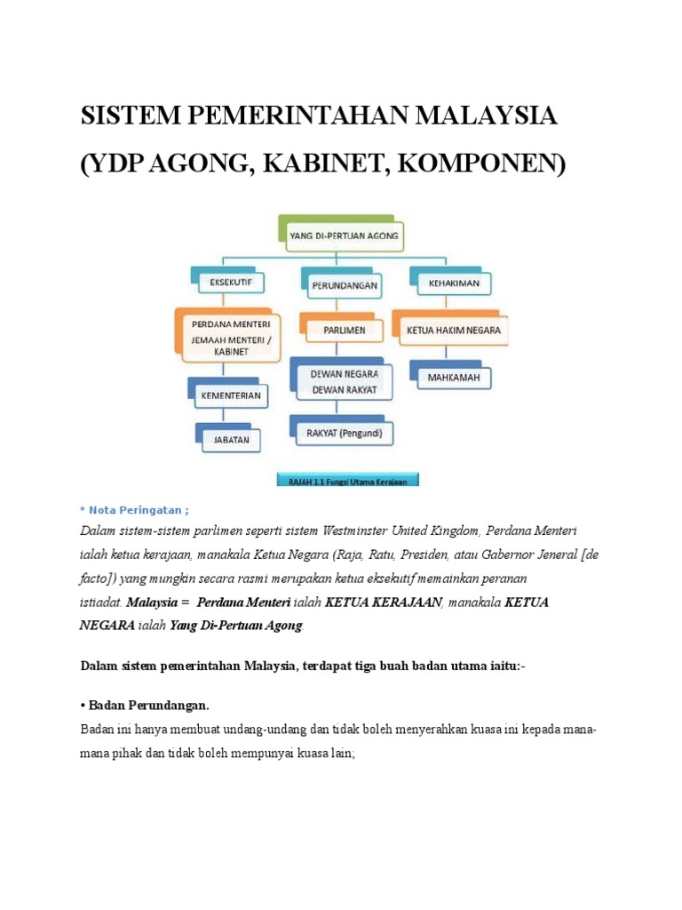 Kuasa tertinggi dalam sistem pemerintahan di malaysia ialah. Secara umumnya perkara terpenting dalam sistem pemerintahan demokrasi ialah. Di perancis korea selatan india dan filipina presiden memegang dua jawatan iaitu sebagai ketua kerajaan dan ketua negara. Dalam sistem pemerintahan malaysia terdapat tiga buah badan utama iaitu. British memperkenalkan pentadbiran berbentuk birokrasi iaitu ditadbir oleh sekumpulan pegawai.
