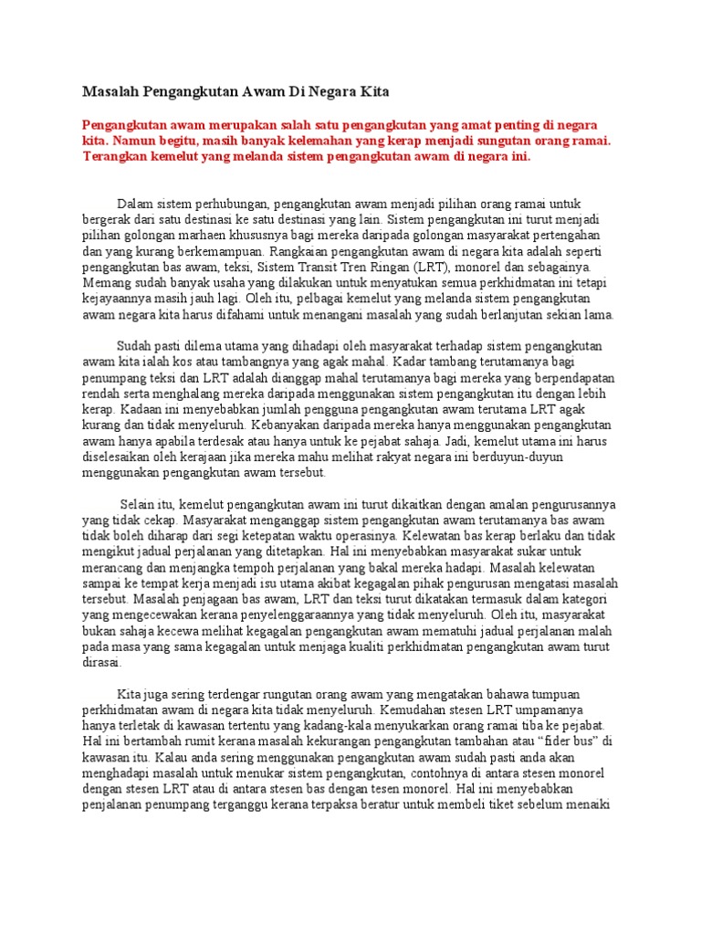 Masalah pengangkutan awam dan cara mengatasi pada 20 7 2016 jumlah. Masalah pengangkutan awam dan cara mengatasi pengangkutan awam penting dalam kehidupan manusia. Pengangkutan awam penting dalam kehidupan manusia. Cadangan untuk mengurangkan masalah pengangkutan awam.
