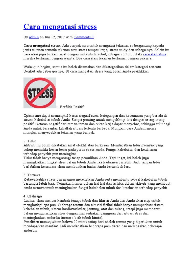 Tekanan kerja tugas ekstra dan ditambah suasana yang tidak nyaman sering membuat tingkat stress menjadi lebih besar sehingga banyak diantaranya memutuskan untuk hengkang dari perusahaan tersebut. Dari beberapa point diatas tentang 6 cara mengatasi stress di tempat kerja semoga dapat membantu anda menemukan penyebab stress di tempat kerja dan menemukan solusi untuk masalah tersebut. 7 tips bekerja dengan seronok hilangkan stress di tempat kerja. Bagaimanakah cara mengatasi stress berlebihan.