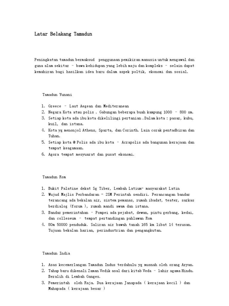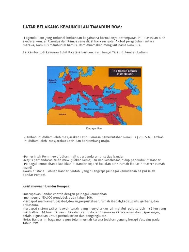 Antara bandar di bawah pemerintahan rom termasuklah pompei yang merupakan bandar contoh disebabkan wujudnya pelbagai kemudahan di bandar ini. Latar belakang tamadun rom. Bandar yg terkenal ialah pompei yg mempunyai pelbagai kemudahan seperti pejabat dewan orang ramai mahkamah perpustakaan rumah ibadat kedai pintu gerbang dan colloseum. 6 1 tamadun yunani 1 lokasi dan perkembangannya tamadun yunani berkembang di semenanjung greece dan pulau pulau yang bertaburan di laut aegean dan mediterranean.