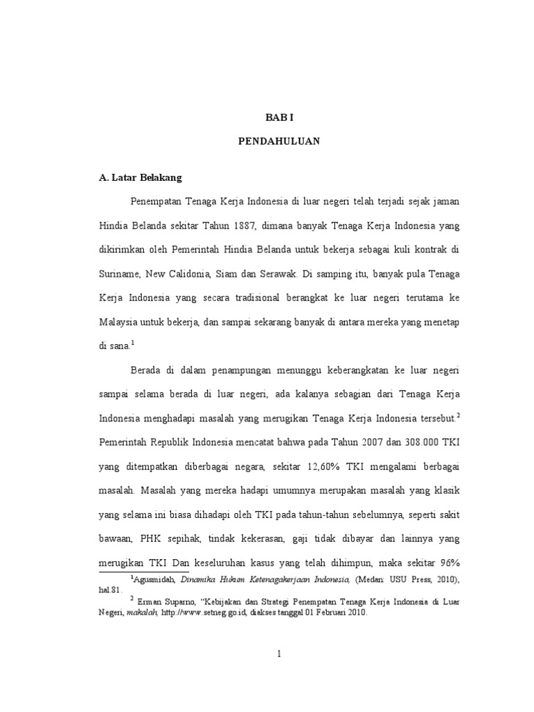 19 9 0 rumusan kajian kemajuan tidak dapat dicapai oleh mana mana negara tanpa memiliki guna tenaga yang berkualiti dan berkemahiran tinggi yang mampu bertindak balas dengan cekap dan kreatif terhadap perubahan ekonomi yang berlaku. Secara historis dengan latar belakang kebijakan politik yang berbeda penempatan tenaga kerja indonesia tki di luar negeri telah terjadi sejak zaman. Maka harus disusun kebijakan nasional di semua sektor yang dapat menyerap tenaga kerja secara optimal. Penegakkan demokrasi di tempat kerja diharapkan dapat mendorong partisipasi yang optimal dari seluruh tenaga kerja dan pekerja buruh indonesia untuk membangun negara indonesia yang dicita citakan.