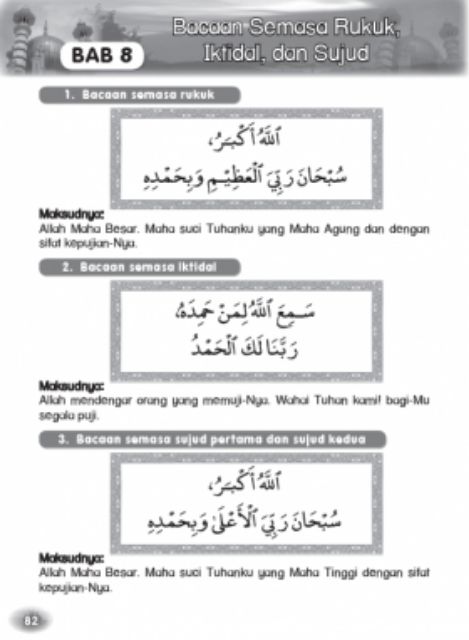 Bacaan ketika bangun dari rukuk. Wahai tuhan kami bagi engkaulah segala pujian. س ب ح ان ر ب ى ال أ ع ل ى و ب ح م د ه subhaana robbiyal a la wabihamdih 3x. Sami a dengar hamidah asalnya hamida hu yang memujinya.