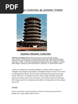 Di hadapan menara ini pula terdapat sebuah medan selera yang telah berusia lebih 20 tahun. Menara condong teluk intan ialah sebuah menara tangki air yang kemudian dijadikan menara jam yang terletak di teluk intan perak ia menjadi mercu tanda bandar teluk intan sejak beberapa lama. It is 25 5 metres tall and from the outside looks like an 8 storey building though inside it is actually. Senibina menara condong teluk intan perak merupakan tarikan utama yang menjadi mercu tanda bandar teluk intan perak justeru dalam program fam trip jom mancing udang 2014 anjuran tourism malaysia perak pada 16 hingga 18 ogos 2014 kami juga berkesempatan berkunjung melihat sendiri dan menghargai keunikan senibina menara condong teluk intan yang bersejarah ini.