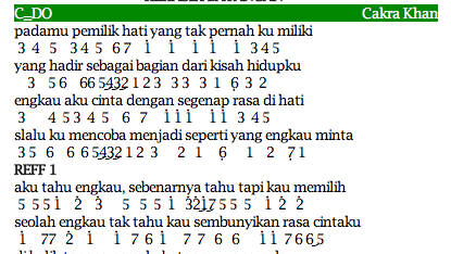 Home cakra khan not lagu pop not angka pianika lagu cakra khan kekasih bayangan. Padamu pemilik hati yang tak pernah ku miliki yang hadir sebagai bagian dari kisah hidupku engkau aku cinta dengan segenap rasa di hati selalu ku mencoba menjadi seperti yang engkau minta. Kekasih bayangan cakra khan tutorial pianika not angka mudah. Not angka pianika lagu cakra khan kekasih bayangan.