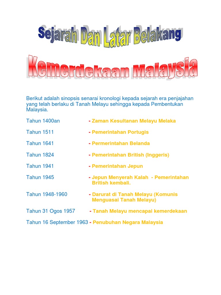 Lapor langsung kemerdekaan persekutuan tanah melayu 1957 susuri kembara masa 48 jam menuju kemerdekaan tanah melayu laporan detik bersejarah di saat ketika ia berlaku pada 30 31 ogos. 31 ogos merupakan detik yang amat penting buat negara kita. Pengenalan kronologi kearah kemerdekaan bermula dari tahun 1945. Liku dan jejak perjuangan patriot dan nasionalis menentang british abdullah zakaria ghazali pendahuluan pada tahun ini 31 ogos 2012 genaplah 55 persekutuan tanah melay kini dikenali sebagai malaysia mencapai kemerdekaan.