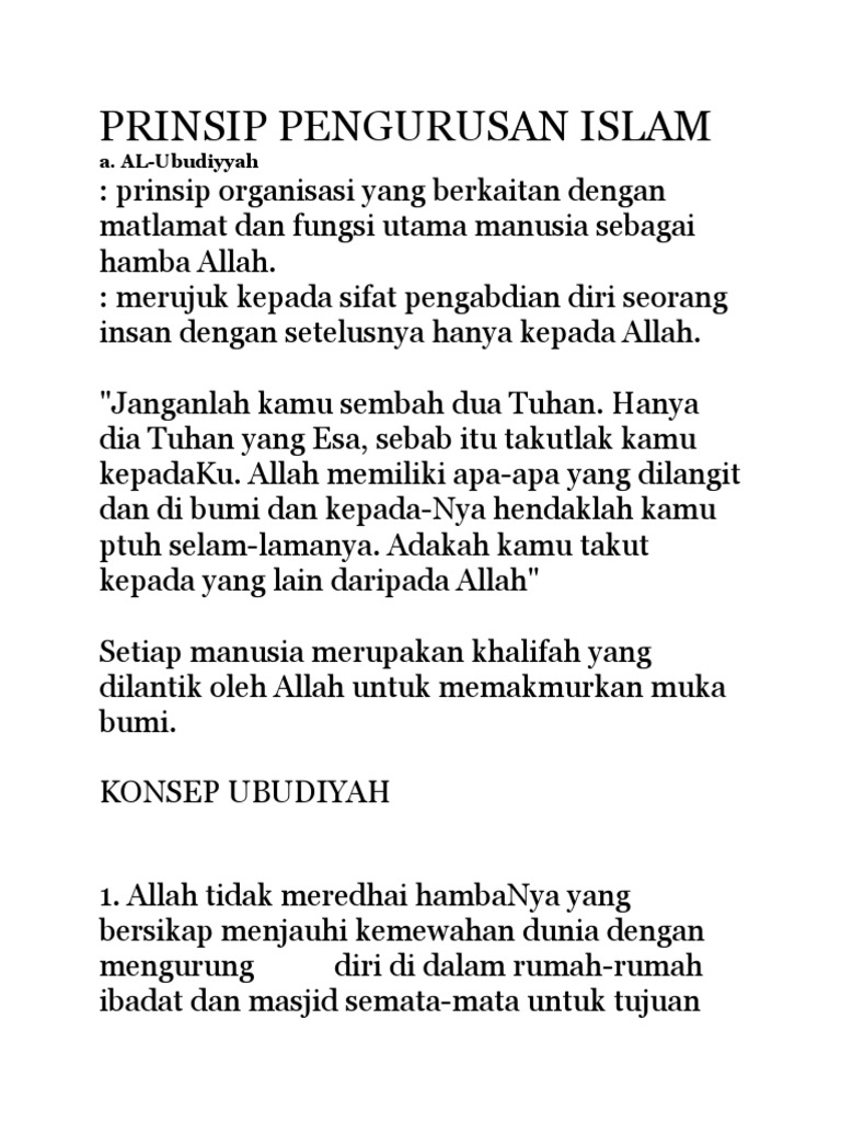 Di peringkat pengurusan organisasi islam menganjurkan kepada satu kaedah pendekatan yang sesuai dan amali. Pengurusan islam menurut muhammad al buraey 1986 pengurusan ialah menyelaraskan tenaga manusia untuk mencapai matlamat kelompok sebagai makhluk sosial yang perlu berinteraksi antara satu sama lain. Dua 2022e folionama pensyarah. Al musawah al musawah atau kata lainnya persamaan merupakan prinsip prinsip pengurusan dalam islam.
