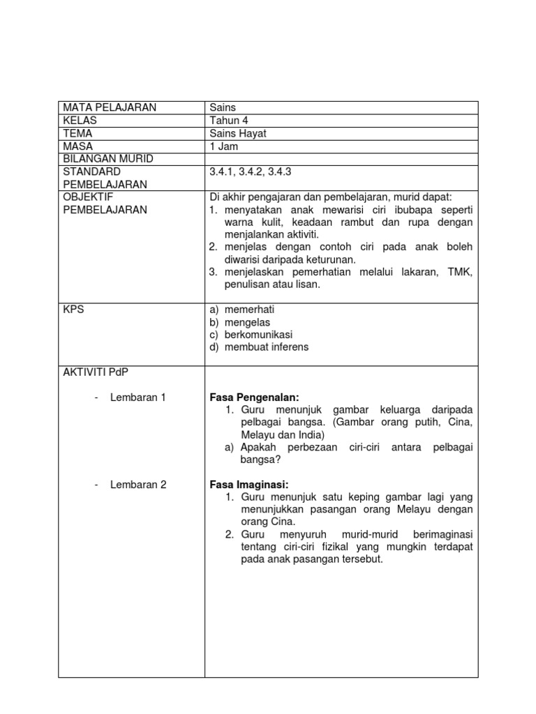 Kurikulum standard sekolah rendah. Mekanisma pewarisan sifat dicetus oleh kajian gregor mendel terhadap tumbuhan pea yang menerangkan pewarisan sifat dalam organisma dalam eksperimen ini pewarisan satu sifat sahaja yang dikaji sifat ketinggian tinggi rendah dikenali sebagai pewarisan monohibrid genotip genotype merupakan kandungan gen dalam sesuatu organisma fenotip phenotype merupakan sifat sifat. Dewan bahasa dan pustaka. Untuk melihat topik pelajaran yang lengkap dengan lebih b.