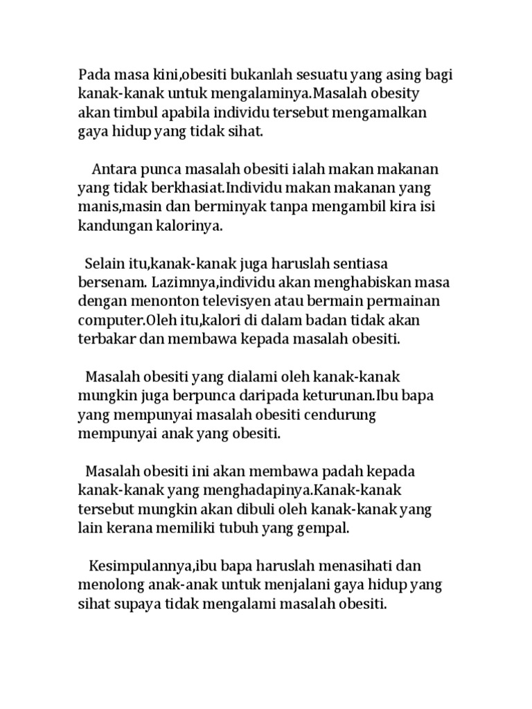 Punca obesiti dalam kalangan kanak kanak. Konklusinya kegemukan dalam kalangan remaja bertitik tolak daripada sikap ibu bapa yang kurang menjaga pemakanan anak anak mereka sejak kecil lagi. Punca dan cara atasi in chewable vitamin c meal shakes vitalea for kids vitamin dan nutrisi published on 11 40 00 am leave a reply masalah obesiti dalam kalangan kanak kanak semakin hari semakin membimbangkan. Secara intihanya beberapa punca yang telah dibincangkan menjadi pencetus masalah obesiti di negara kita. Masalah obesiti dalam kanak kanak.