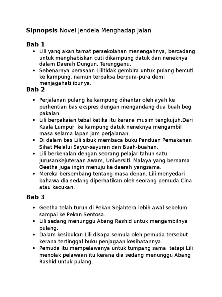 Sinopsis tema persoalan plot watak perwatakan latar masa latar tempat latar masyarakat teknik penulisan nilai pengajaran novel jendela menghadap jalan k5. Novel tingkatan 4 novel jendela menghadap jalan sumber bahagian pembangunan kurikulum bab satu. Berikut adalah sinopsis kupasan dan ulasan ikut bab novel jendela menghadap jalan. 23514 hits sinopsis tema persoalan plot watak perwatakan latar masa latar tempat latar masyarakat teknik penulisan nilai pengajaran sila klik sinopsis tema persoalan plot watak perwatakan latar masa latar tempat latar masyarakat teknik penulisan nilai.
