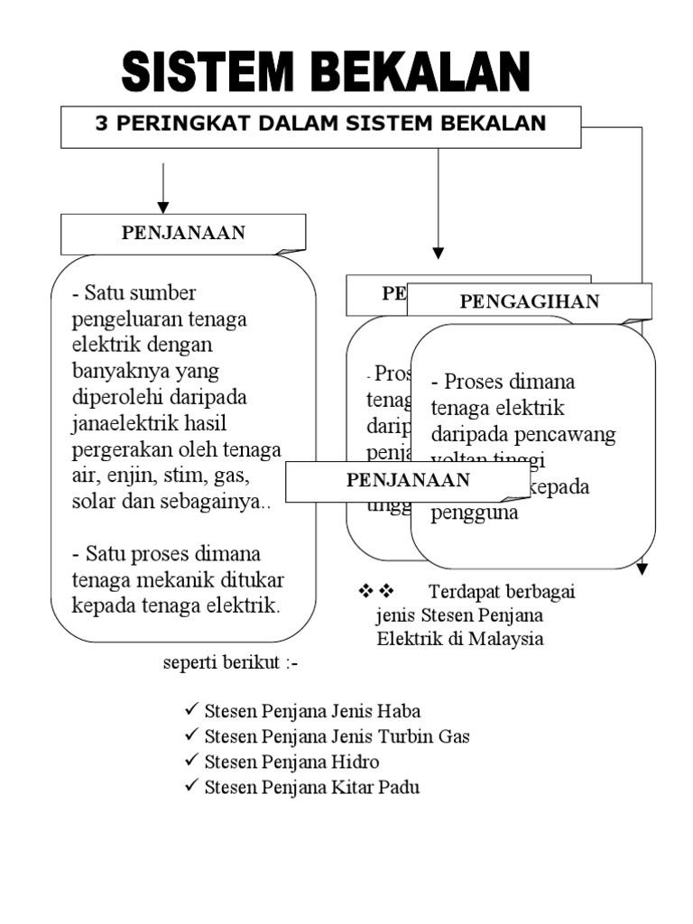 Penjanaan tenaga elektrik. Pembekalan tenaga elektrik kepada pengguna perlu melalui tiga peringkat penting iaitu penjanaan tenaga elektrik di stesen janakuasa penghantaran dan pengagihan tenaga elektrik kepada pengguna. Penjanaan tenaga elektrik sumber tenaga share share by norizanhusain79. Penjanaan merupakan proses pengeluaran tenaga elektrik yang terhasil daripada pemotongan fluks oleh pengalir gegelung yang terdapat pada sebuah penjana.