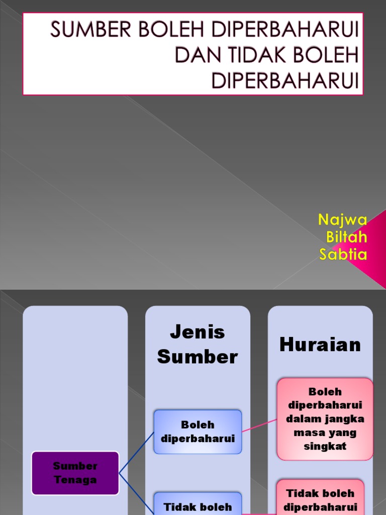 Sumber yang boleh diperbaharui. Sumber tenaga yang tidak boleh diperbaharui non renewable energy sources merupakan tenaga yang tidak boleh ditambah digantikan atau diperbaharui ianya terhad dan akan kehabisan pada masa akan datang contoh contoh sumber tenaga yang tidak boleh diperbaharui adalah seperti. Ini berlaku sekiranya kerajaan kerajaan dunia merangka polisi untuk memanfaatkan potensi penggunaan tenaga tenaga tersebut. Sumber tenaga yang boleh diperbaharui seperti tenaga suria angin biojisim dan tenaga hidro boleh mencapai hampir 80 permintaan bekalan tenaga dunia pada tahun 2050. Sumber sumber tenaga yang boleh diperbaharui boleh diganti secara semula jadi dalam jangka masa yang singkat.